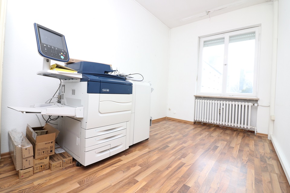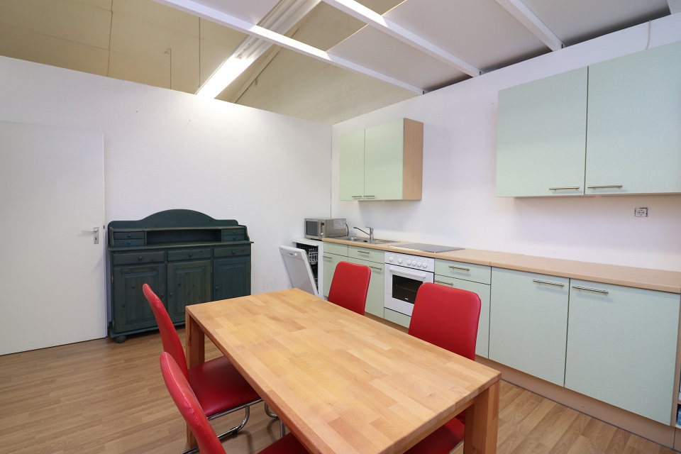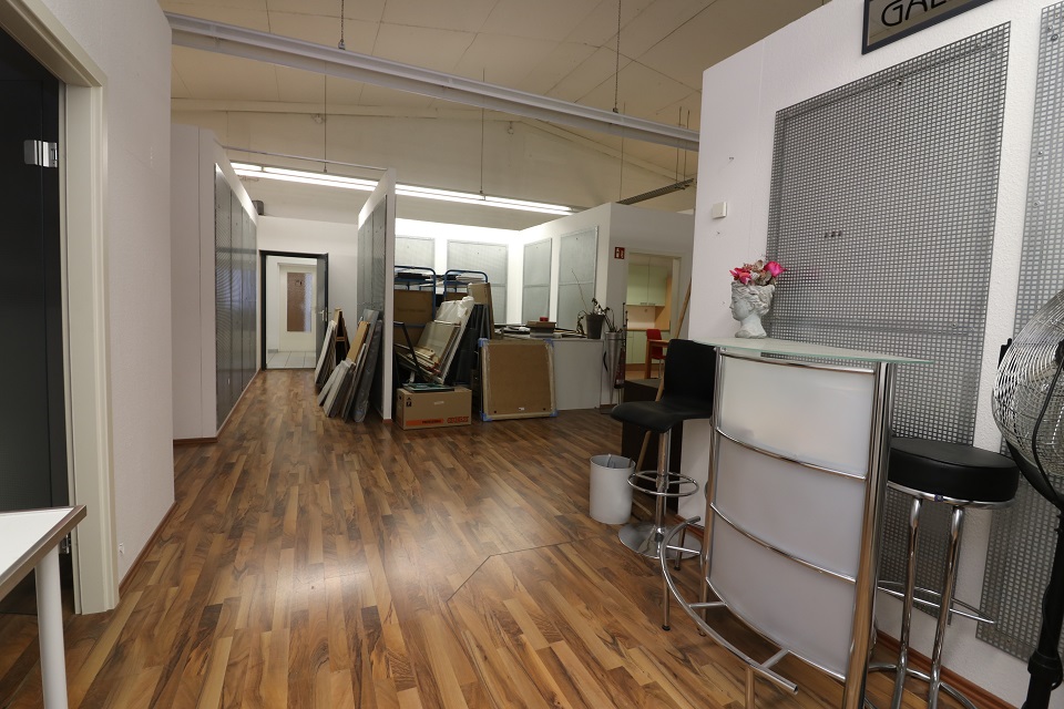Hier befinden sich die Büroflächen mit ca. 38qm und 12qm, sowie ein Besprechungsraum mit weiteren 21qm. Des Weiteren befinden sich auf der Fläche noch die Sanitäranlagen sowie eine separate Küche welche mit einer Einbauküche, Spülmaschine und Herd ausgestattet ist.