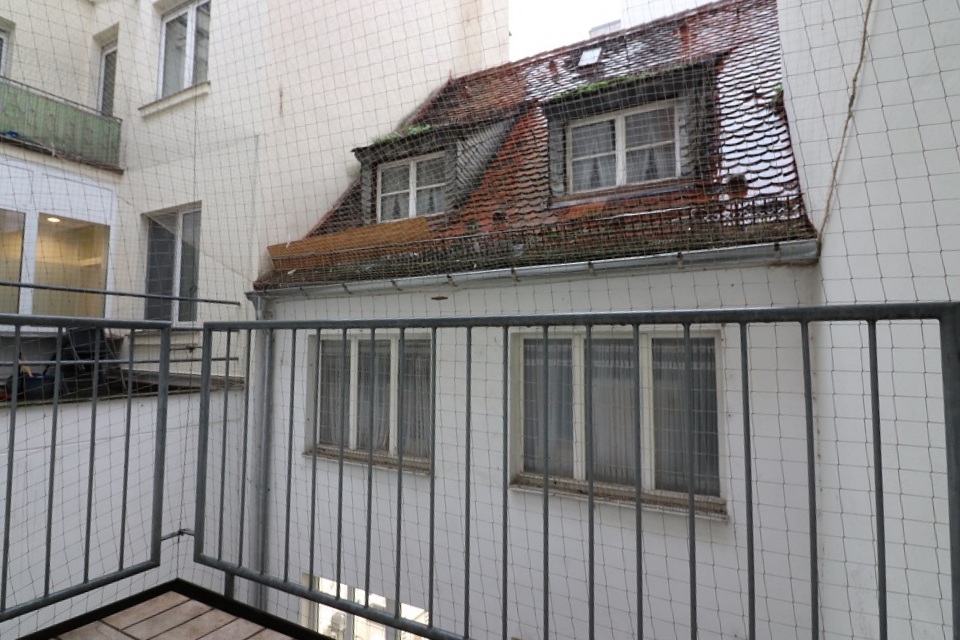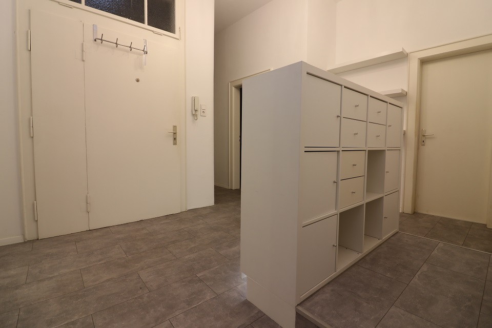 Ein ca. 10qm grosser Aufenthaltsraum ist mit einer Spüle und einer Arbeitsplatte ausgestattet. Von hier aus ist ein kleiner Balkon zum Hinterhof zugänglich.