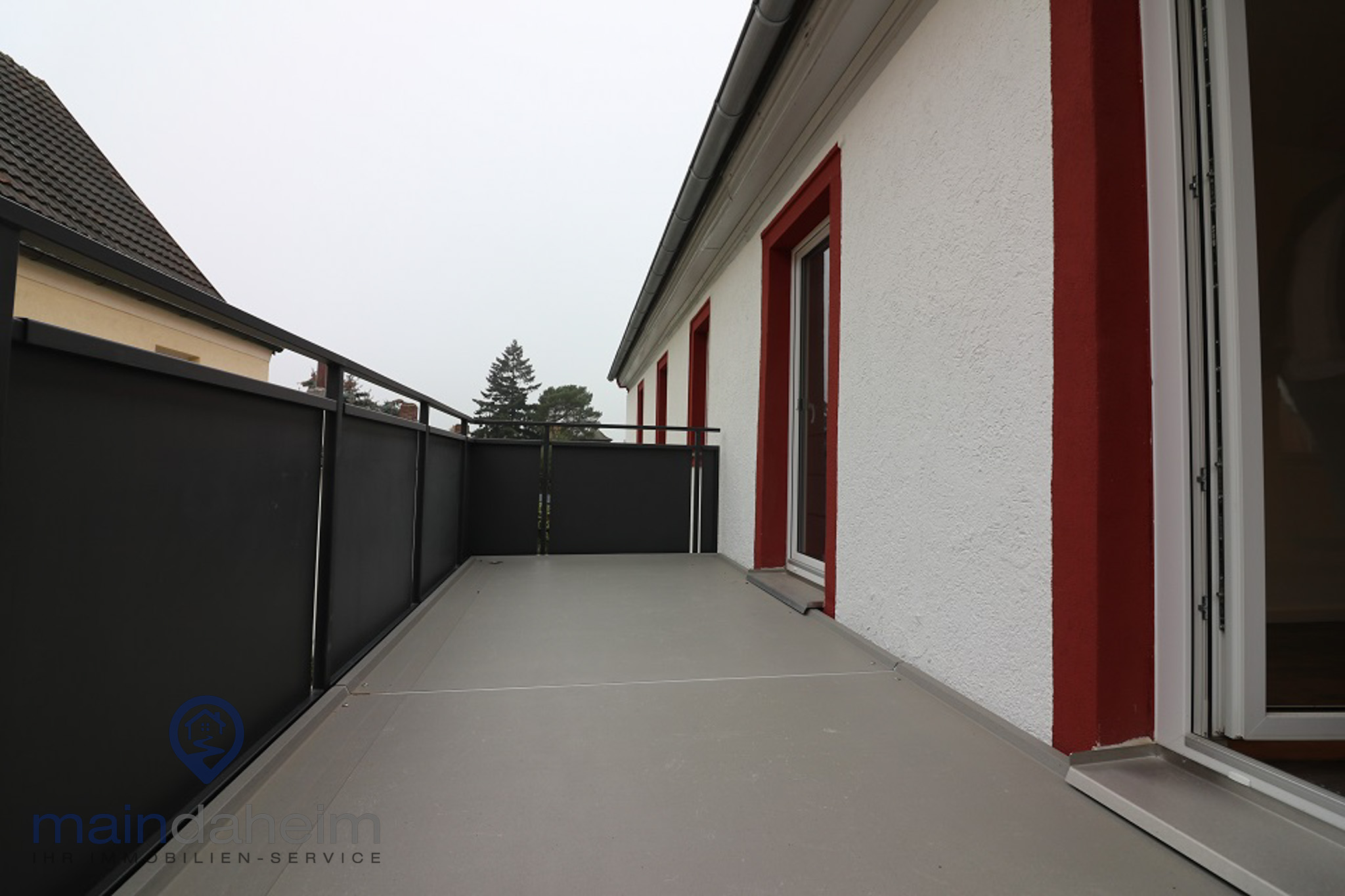 Der ca. 10qm große Balkon ist praktischerweise bereits vom Treppenhaus, sowie vom Wohnzimmer aus zugänglich.