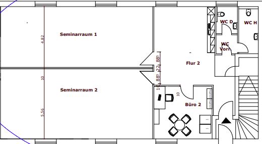 Des Weiteren verfügt die Gewerbefläche über zwei mit ca. 68qm und 59qm großzügig geschnittene Büros welche Platz für jeweils bis zu 10 Arbeitsplätze bieten. Diese Räumlichkeiten bieten sich aufgrund der Größe auch hervorragend als Seminarräume an.