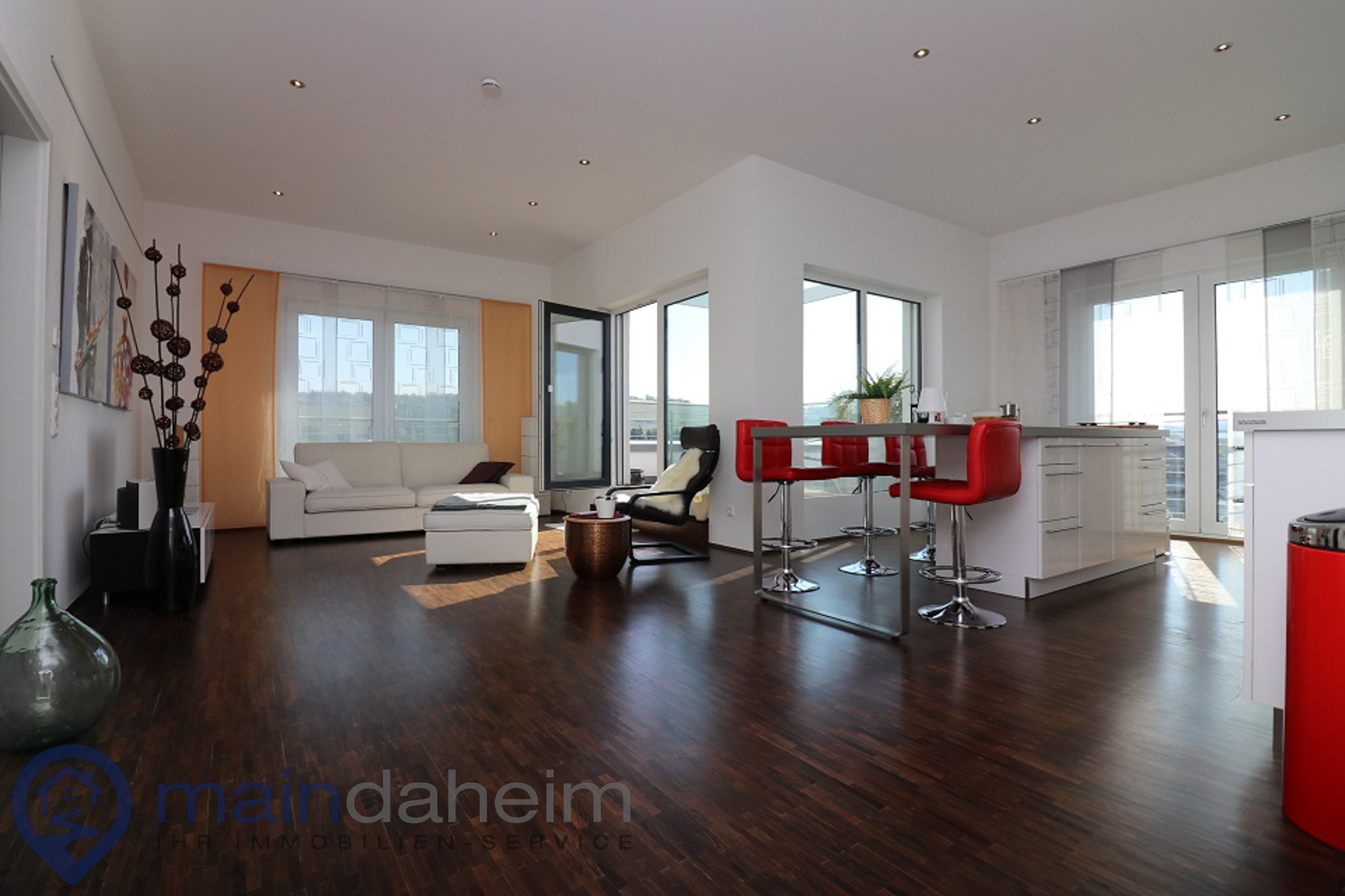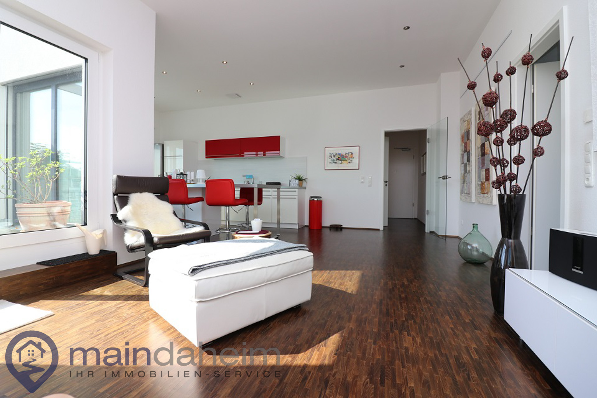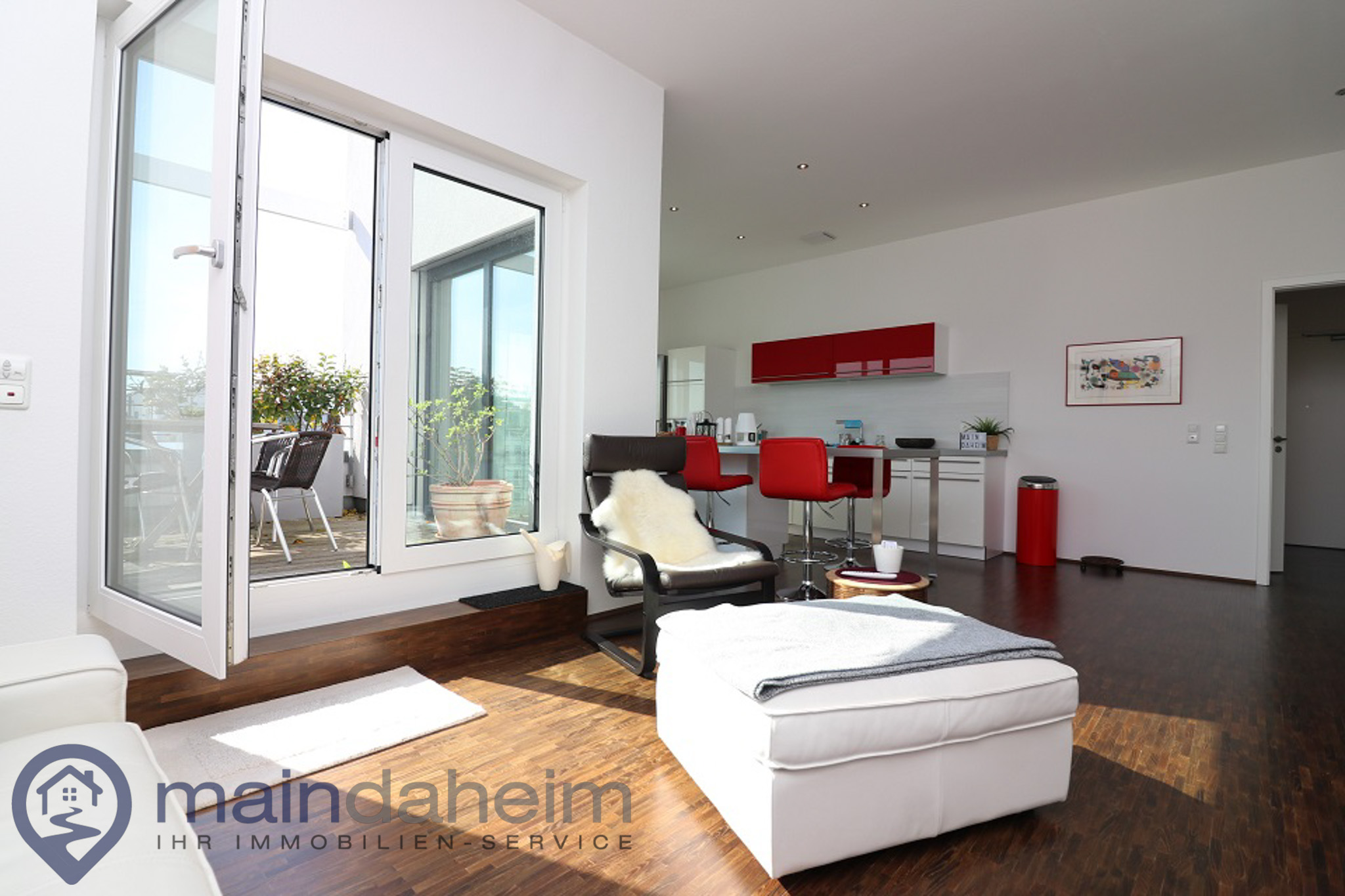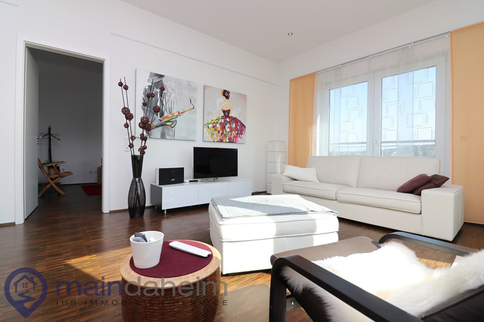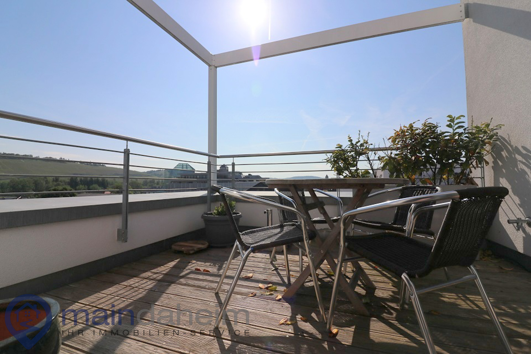 In einem Neubau von 2013 ist die 75qm grosse Wohnung bequem mit dem Aufzug zu erreichen. Diese ist mit Parkettboden ausgelegt, wärmt angenehm mit Hilfe einer Fußbodenheizung und bietet einen tollen Ausblick auf die Weinberge und die Festung Marienberg.