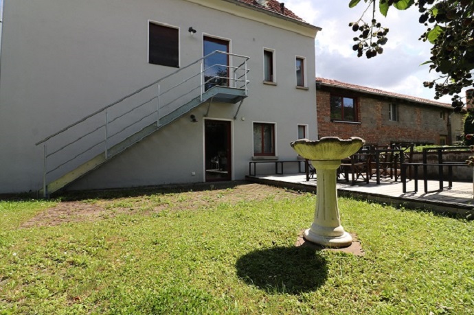 Eine komplett ausgestattete Küche mit Sitzgelegenheit, ein gemütliches Wohnzimmer, das Badezimmer mit Dusche und Waschmaschine sowie eine grosse Terrasse mit Grünfläche und Teich stehen dem Mieter zur Gemeinschaftsnutzung zur Verfügung.