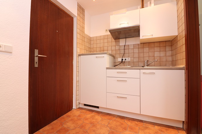 Es empfängt Sie ein großzügig geschnittener, gefliester Eingangsbereich mit einer neuen, weißen Einbauküche und Garderobe.