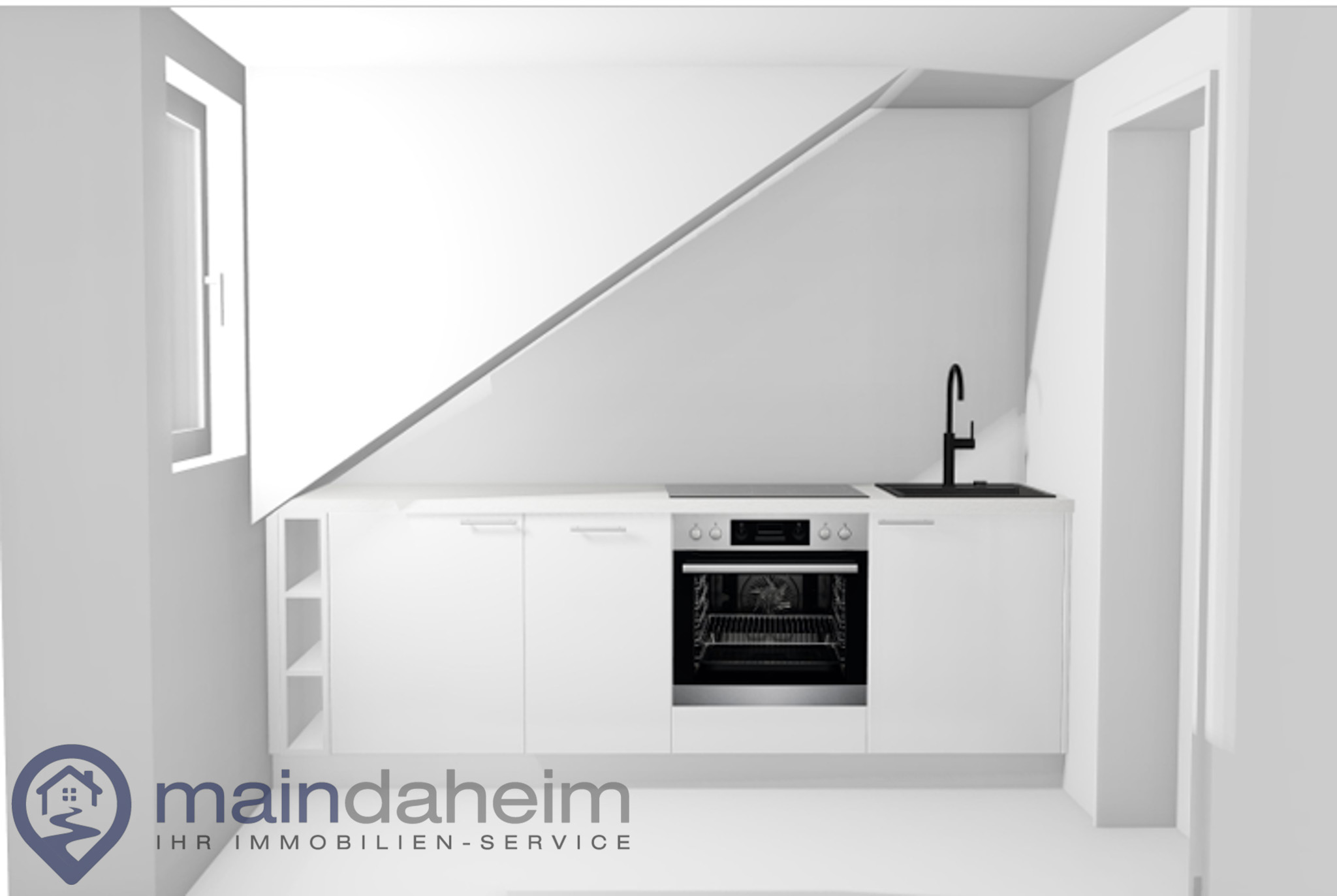 Die separate Küche ist von hier aus zugänglich, die Einbauküche wird in der KW 44 eingebaut. Dieser verfügt über einen Backofen und Herd, sowie eine Spüle. Ein Beispielfotos der Planung ist im Exposé ersichtlich.