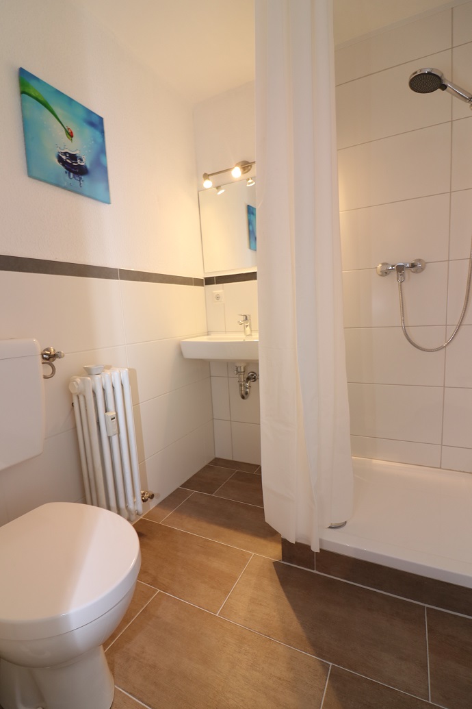 Vor Kurzem wurde das Badezimmer, welches über eine Dusche verfügt, komplett renoviert und ist modern gefliest.