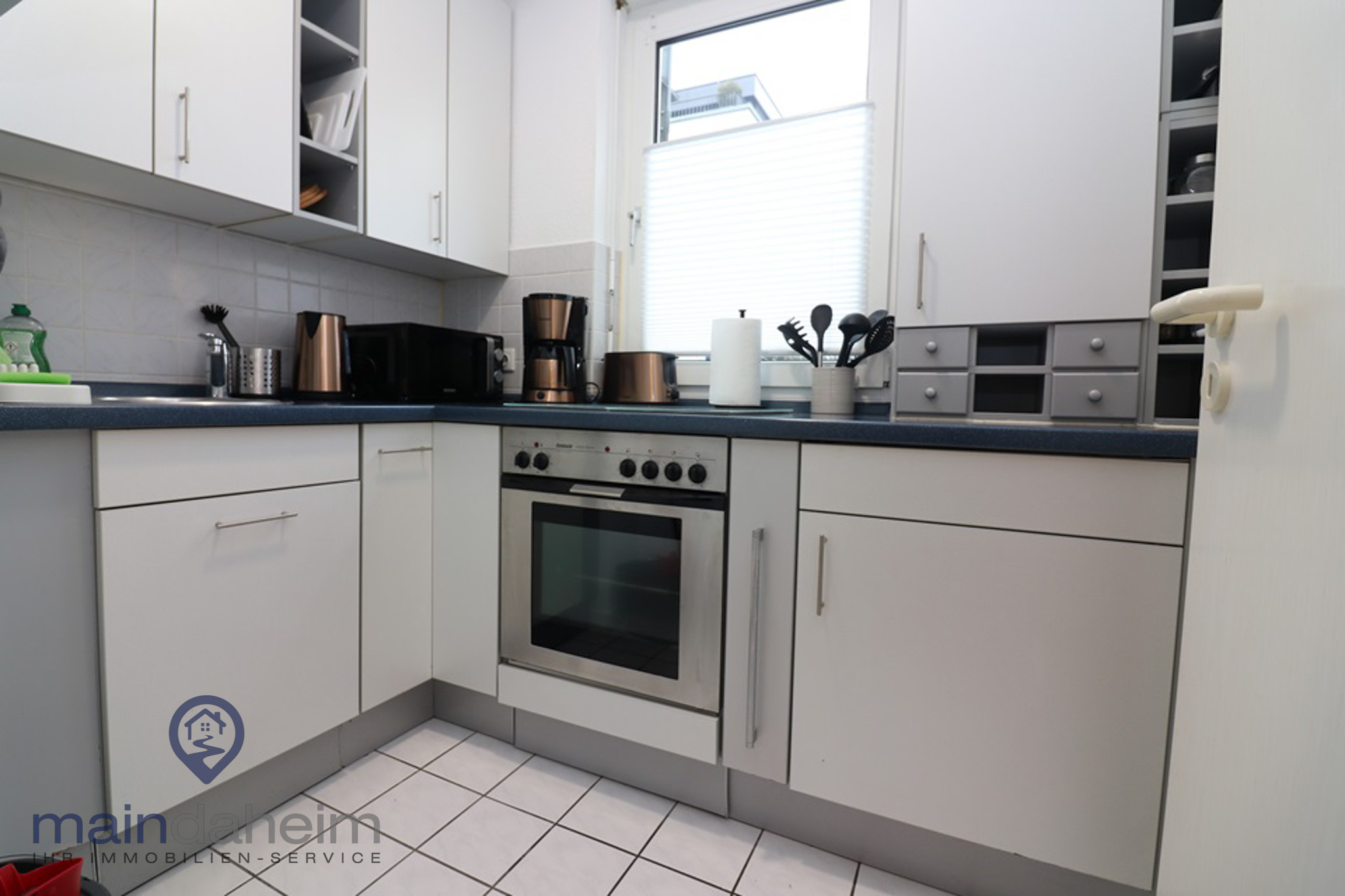 Die kleine, voll ausgestattete Einbauküche ist komplett ausstaffiert und verfügt unter anderem über eine Mikrowelle, Kaffeemaschine, Wasserkocher usw.