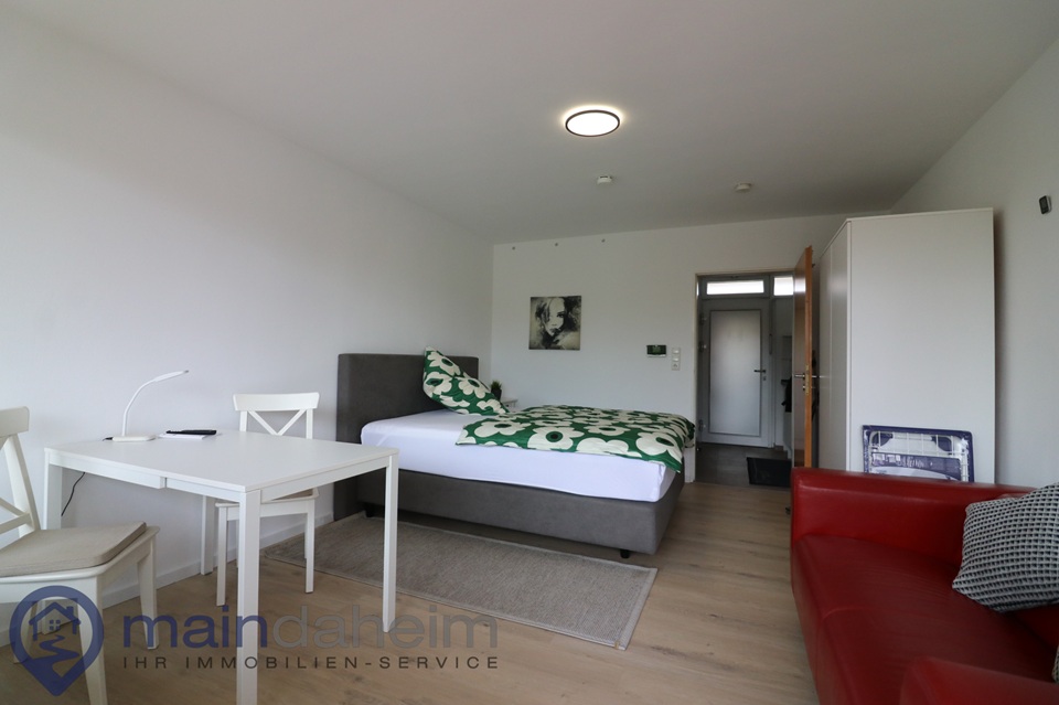 Die Möblierung im Wohn- und Schlafbereich besteht aus einem neuen Boxspringbett (1,60 x 2,00) einem Nachtkästchen, einem Esstisch mit 2 Stühlen, sowie einem Regal, TV und Kleiderschrank.