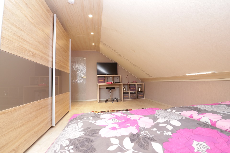 - Geräumiges, ca. 21qm grosses Schlafzimmer mit Doppelbett, großem Kleiderschrank, Regal und TV.