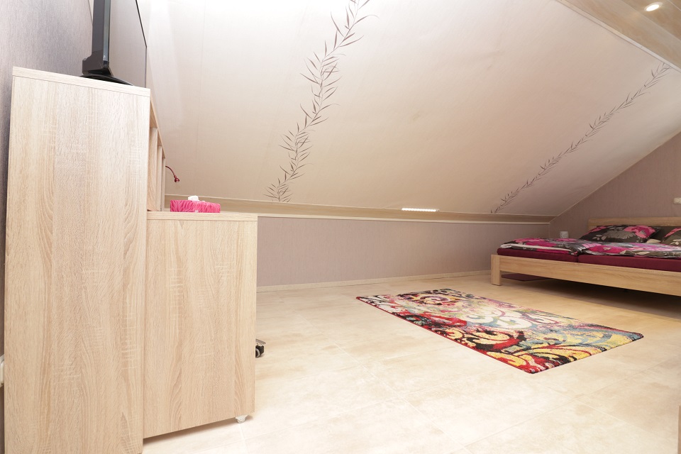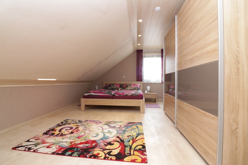 - Geräumiges, ca. 21qm grosses Schlafzimmer mit Doppelbett, großem Kleiderschrank, Regal und TV.