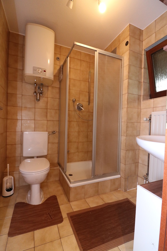 Von hier aus ist das Badezimmer mit Dusche zugänglich.