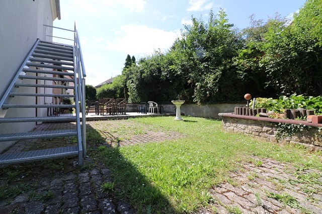 Eine komplett ausgestattete Küche mit Sitzgelegenheit, ein gemütliches Wohnzimmer, das Badezimmer mit Dusche und Waschmaschine sowie eine grosse Terrasse mit Grünfläche und Teich stehen dem Mieter zur Gemeinschaftsnutzung zur Verfügung.
