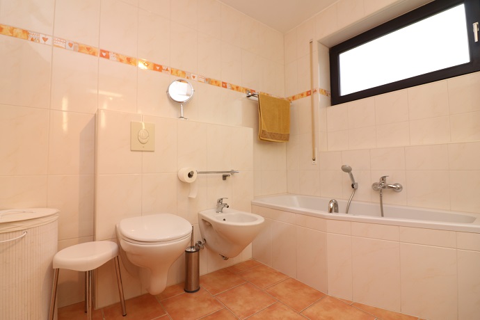 Auf der gleichen Ebene befindet sich das separate Elternteil mit modernem, eigenem Badezimmer welches mit Wanne, Dusche, Bidet und Doppelwaschbecken ausgestattet ist.