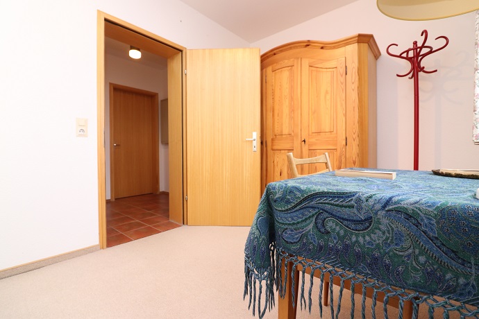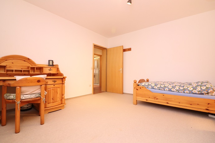 Vom Eingangsbereich/Flur gelangt man in das Untergeschoß welches über 3 weitere Schlafzimmer verfügt. Diese sind jeweils mit einem Einzelbett und Schrank, sowie in 2 der 3 Schlafzimmer mit einem Schreibtisch und Stuhl möbliert.